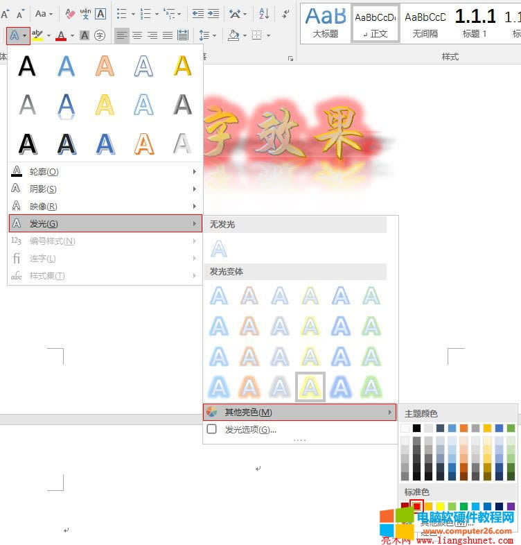 3、另外,“其他亮色”用于更换所选择样式的发光颜色,选择“红色”的效果,如图5所示: