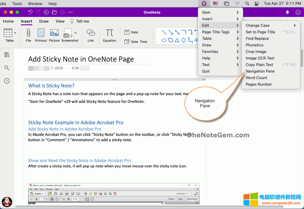 苹果版珍宝菜单 Gem Menu for Mac OneNote,提供有类似 Word 的导航窗格,它罗列出当前 OneNote 页面的所有的内容标题。