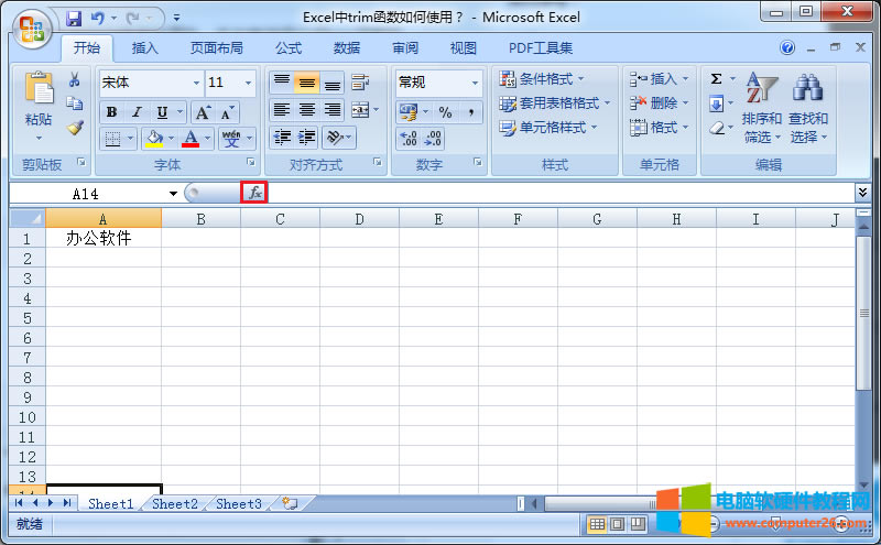 第一步:启动office办公软件,新建excel文档,并输入样例文本,鼠标选中输出内容所在单元格B1,然后点击『fx』,如下图所示红色方框标记处;;