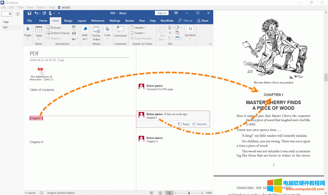 在浏览 PDF 的过程中,我们可以使用 Word 的批注对当前的 PDF 进行批注。