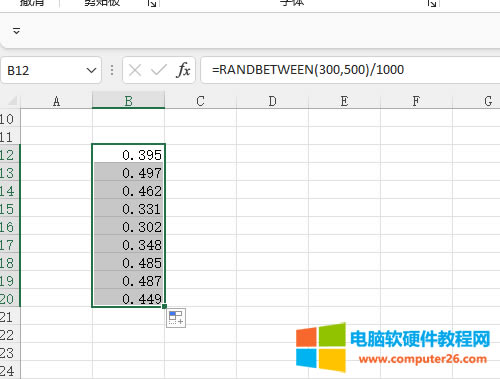 如果要增加小数位的话,可使用“randbetween(300,500)/1000”的函数公式,让小数位增加到三位小数。