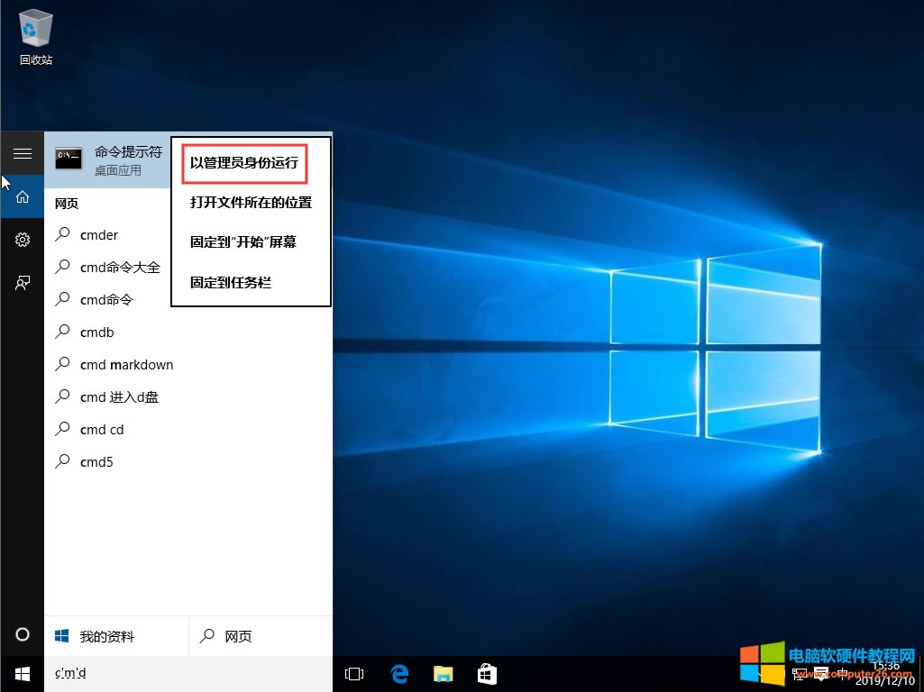 2、右键点击命令提示符桌面应用,在打开的菜单项中,选择以管理员身份运行;