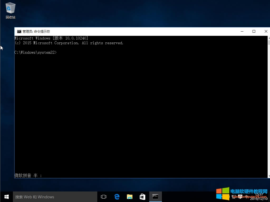 3、最后,在打开的管理员:命令提示符窗口中,输入: