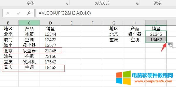 如图14所示,数据中所有“冰箱和吸尘器”的销量都进行了求和汇总。这就是使用公式进行多条件求和的全过程了。