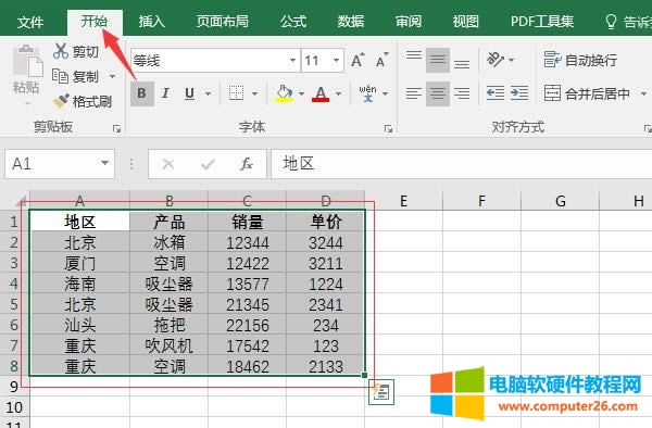 如图1所示,编辑好原始数据后,我们将“地区和产品”作为筛选数据的两项条件,将“销量”作为筛选的结果。
