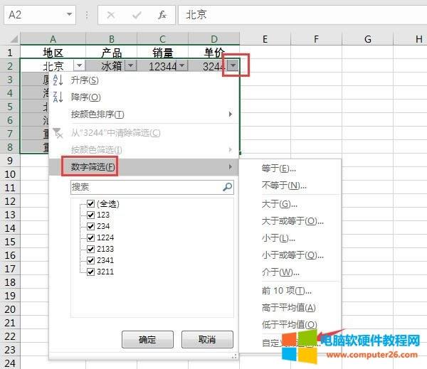 3.数字筛选-自定义