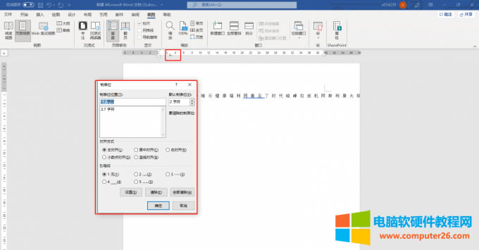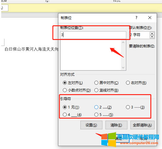3、在制表位位置的文本框中输入字符数量,在引导符功能中可以设置制表位的符号,然后点击确定。