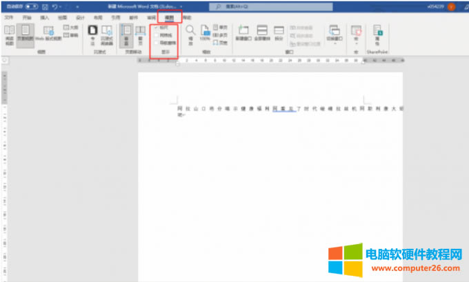 1、打开Word,点击软件上方菜单栏上的[视图]-[显示]指令,在其下拉菜单中勾选[标尺]选项,在软件界面就会出现垂直标尺和水平标尺了。