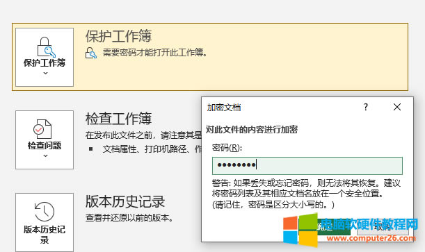 单击顶部菜单栏“文件”,单击侧边菜单栏“信息”。信息界面顶部便是“保护工作簿”,单击三角键将其展开,选择“用密码进行加密”,在弹窗输入密码即可(如图2、图3)。