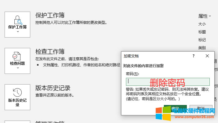 Excel去除加密也需要在“加密文档”弹窗内对密码进行删除。