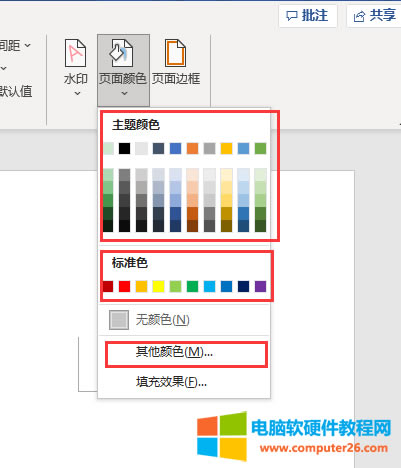 展开设置面板后,我们可以直接选择“主题颜色”和“标准色”来填充页面,也可以单击“其他颜色”打开色盘来自定义颜色(如图3)。