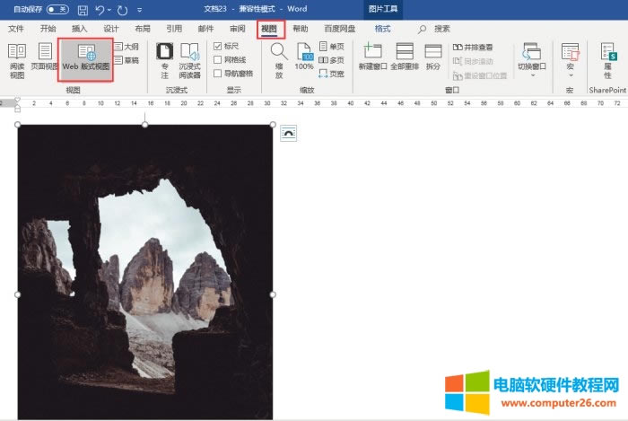 1.针对这一情况,只有在Web版式视图中才能进行编辑查看,选中“视图”选项下的“Web版式视图”,即可对图形图片进行查看了。