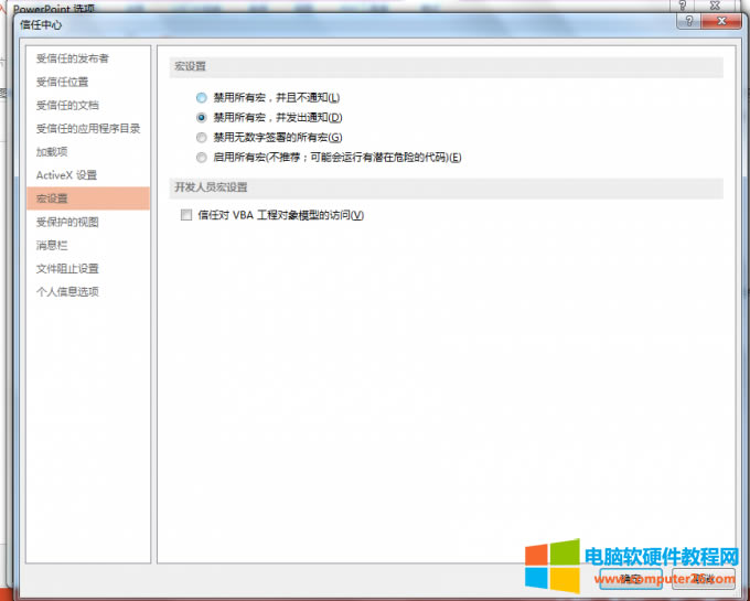 在信任中心设置启用宏后,就可以解决ppt文件打不开的问题了。