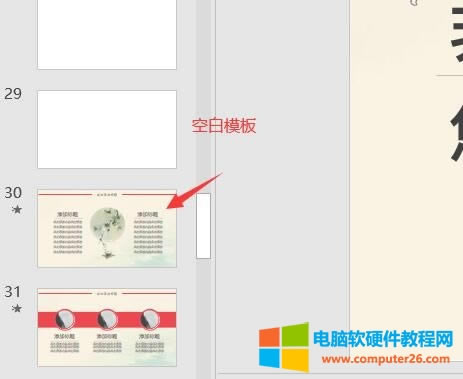 如图5所示,常规的ppt模板大多为PPTX格式,但也有部分模板是以“POT”文件格式进行保存的。这是,就需要提前插入空白页,在导入模板。