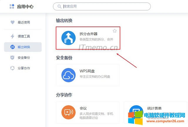 2、在应用中心,找到:拆分合并器 或 搜索该应用直接就可以定位找到了。