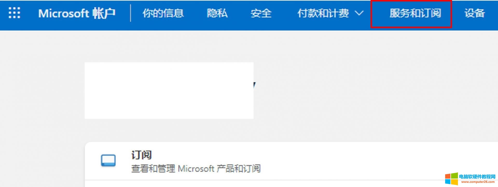 登录成功后,我们会进入到账户的管理面板,如图3所示,单击顶部菜单栏中的“服务和订阅”菜单。