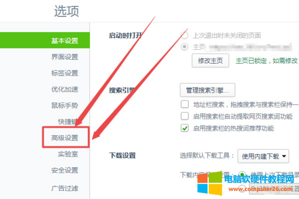 2、然后在打开的页面中点击左侧的高级设置选项,如下图所示;