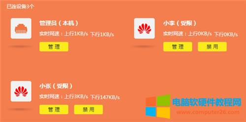 4、检查设置效果,在状态中查看,小李和小张的上下行速率均受到控制,如下: