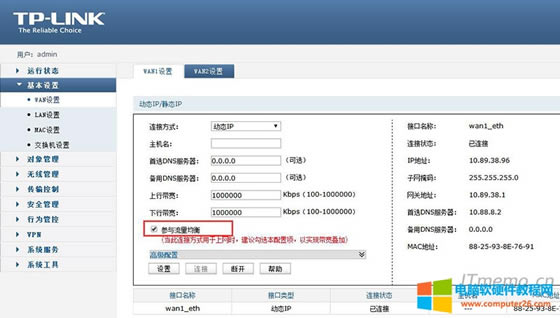 设置WAN连接不在叙述,根据实际情况(如静态,拨号),我这边是动态获取