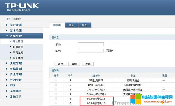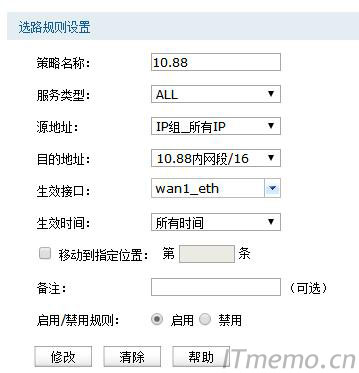 由于我这边的情况非常特殊,访问互联网的网段是10.188.0.0;访问内网的网站(网址)所在网段有10.88.0.0和10.89.0.0,在做路由策略时,需要分别对10.88/16,10.89/16这两个网段做分组