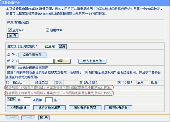 在“流量均衡控制”中可以看到,有隐含的规则在生效。