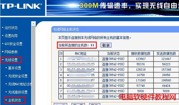 4、然后点击“主机状态”来查看当前有哪些设备通过无线连接了你家的路由器;