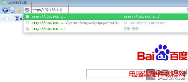 正常的能打开的路由器的管理地址应该是192.168.1.1也就是说不需要你在这个地址前再带上www,如果你错误的在浏览器的地址栏输入www.192.168.1.1这样的地址,那么是不能正确的进入路由器的管理地址的,切记,这个网址是错的!记住,没有WWW!可能还有的人输入http192.168.1.1那么你就少输入了://这个符号,所以最简单的输入方法是把浏览器地址栏内容清空,再输入http://192.168.1.1 回车。