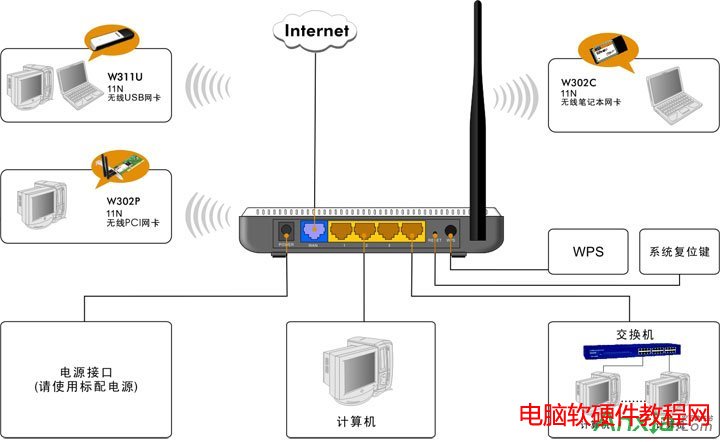 WAN口连接宽带的进线、LAN口连接局域网内的电脑,很简单不是。