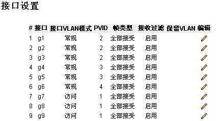 为每个端口选择VLAN模式可以在“接口设置”子页面中进行设置,如下图所示: