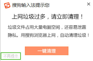搜狗输入法”上网垃圾文件过多请立即清理“弹窗如何屏蔽