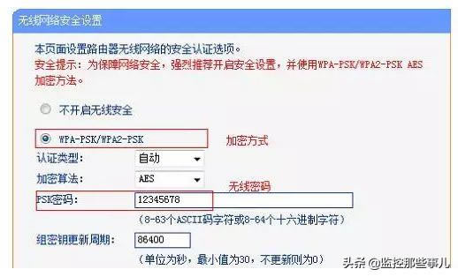 2.进入无线安全设置:如下图所示,设置加密方法和密码:并记录一段时间,设置第二个。
