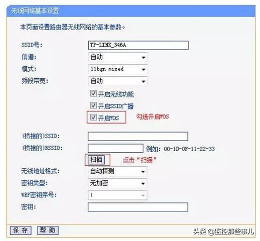 2.打开路由器B的基本无线设置,检查WDS,然后扫描到第一个路由器。