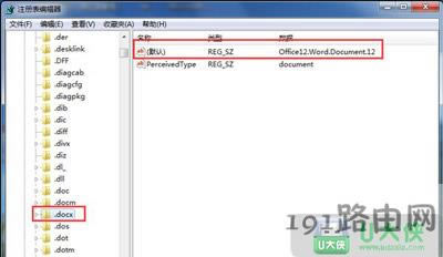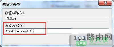 5、双击(默认)一项,将其改为 Word.Document.12。