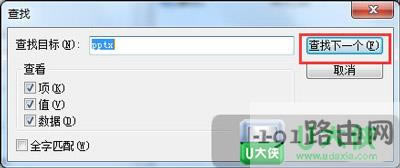 9、如果在注册表中使用CTRL + F查找时,没有找到相应的目录,请注意图中标出的“查找下一个”。CTRL + F只能查找该位置后的内容,请选择HKEY_CLASSES_ROOT目录中的第一个目录后,重新查找。