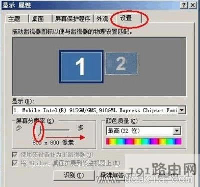 3、如图,将分辨率用鼠标拉到最高。(XP系统需切换到设置选项卡)