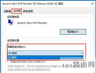 4、在最后的显示适配器属性中,在顶部切换到“监视器”选项,就可以看到“屏幕刷新率”设置了。