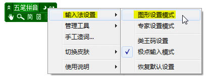 1、首先要对极点五笔进行设置,先找到极点五笔:输入法设置->图形设置模式: