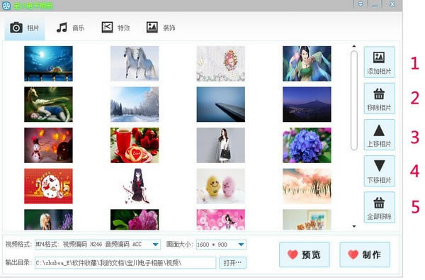 宝川电子相册是一款很方便的大众用户的电子相册也是一款图片音乐生成视频程序。宝川电子相册界面很简洁相对于其他的电子相册软件不会那么复杂。如果大家不是专业制作电子相册的朋友不妨可以试试用这款宝川电子相册软件,也许能做出你满意的效果哦