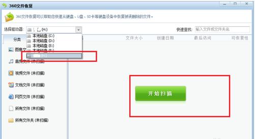 2,进去文件恢复界面之后,首先在选择驱动器上,选择恢复u盘上的文件,这里选择的是h盘,点击开始扫描,如下图图所示:
