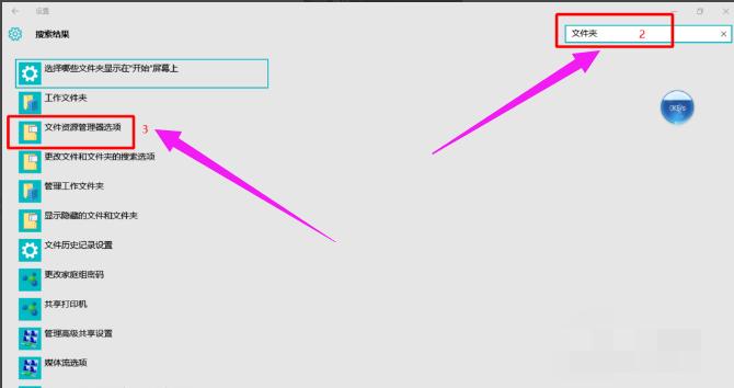 在搜索栏搜索:文件夹,在搜索结果中选中“文件资源管理器选项”