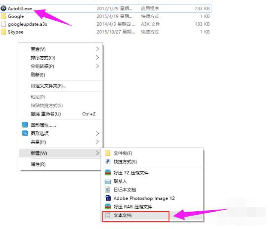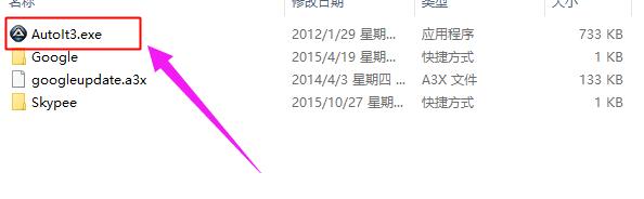 不用修改Google和skypee这两个文件夹的属性,直接打开,在里边新建一个文本文件,不用写任何东西,保存。将文件名修改为 AutoIt3.exe,包括扩展名。