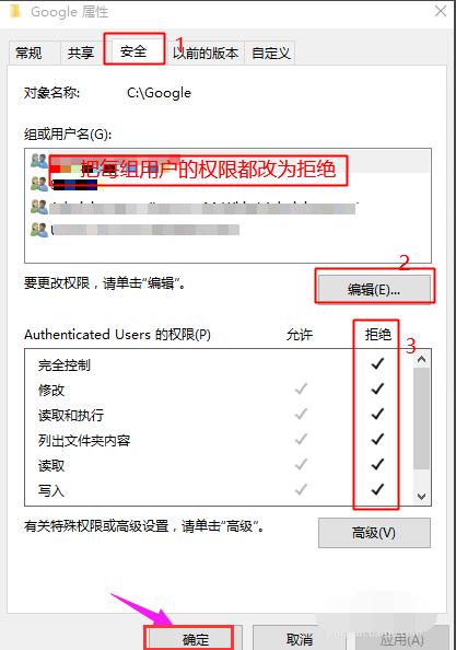 有这两个文件夹则打开这两个文件夹的“属性”里边找到“安全”这一目录,把每一组用户的权限都设置为拒绝,没有这两个文件夹则创建,将属性也这样修改。