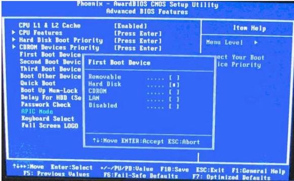 进入高级BIOS设置Advanced BIOS Features界面,选择硬盘启动优先级:Hard Disk Boot Priority