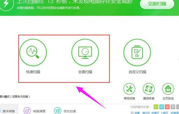 u盘感染了病毒,打开360安全卫士,进行全盘杀毒。