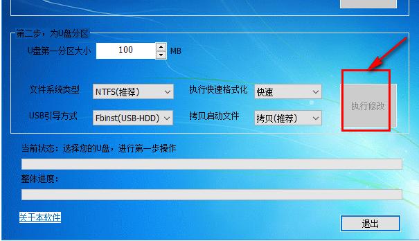 可以在下方的进度读条中查看U盘分区的进度。