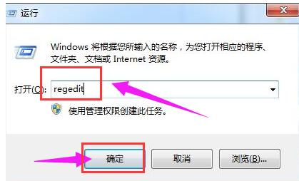 用户按组合键win+r打开“运行”的对话框,输入“regedit”进入注册表程序。
