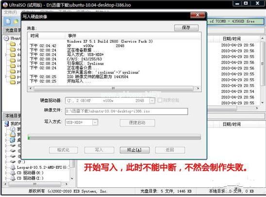 3,工具正在写入镜像,中断会导致制作失败以及U盘会损坏