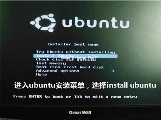 6,选择【install ubuntu】进入ubuntu安装菜单