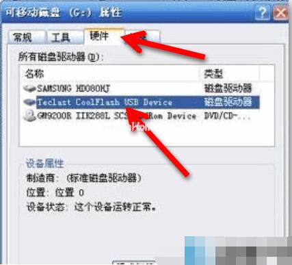 2,在“可移动磁盘G盘 属性”窗口,我们点击“硬件”选项卡。