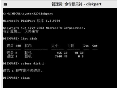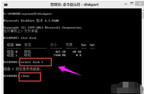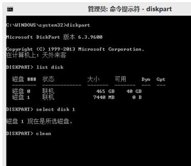 输入select disk X(X代表磁盘后面的数字0、1,可磁盘的大小来判断数字是多少,一般是按enter